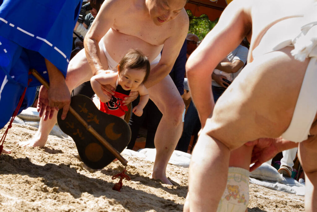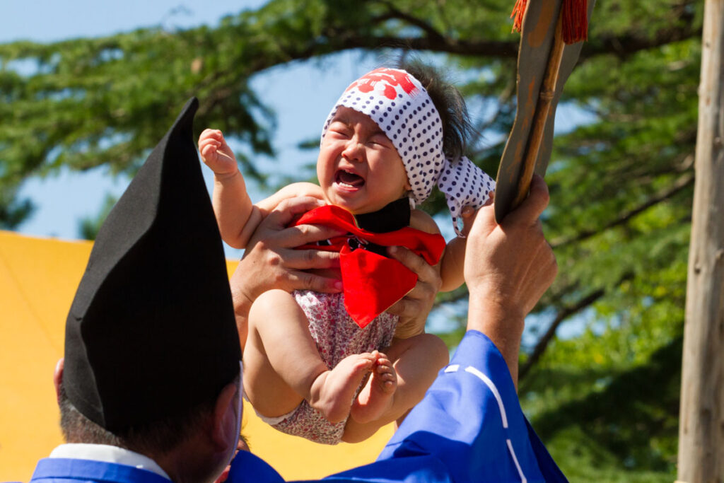 Nakizumo festivals are held in the belief that crying babies will grow to be healthy and strong and have prosperous futures – especially so if the crying is long and loud. This originates from the Japanese proverb “naku ko wa sodatsu”, meaning “crying babies grow fast”. In ancient Japan, the sound of babies crying was also believed to ward off evil spirits. As a result, it is believed that there are multiple benefits to participating in Nakizumo.