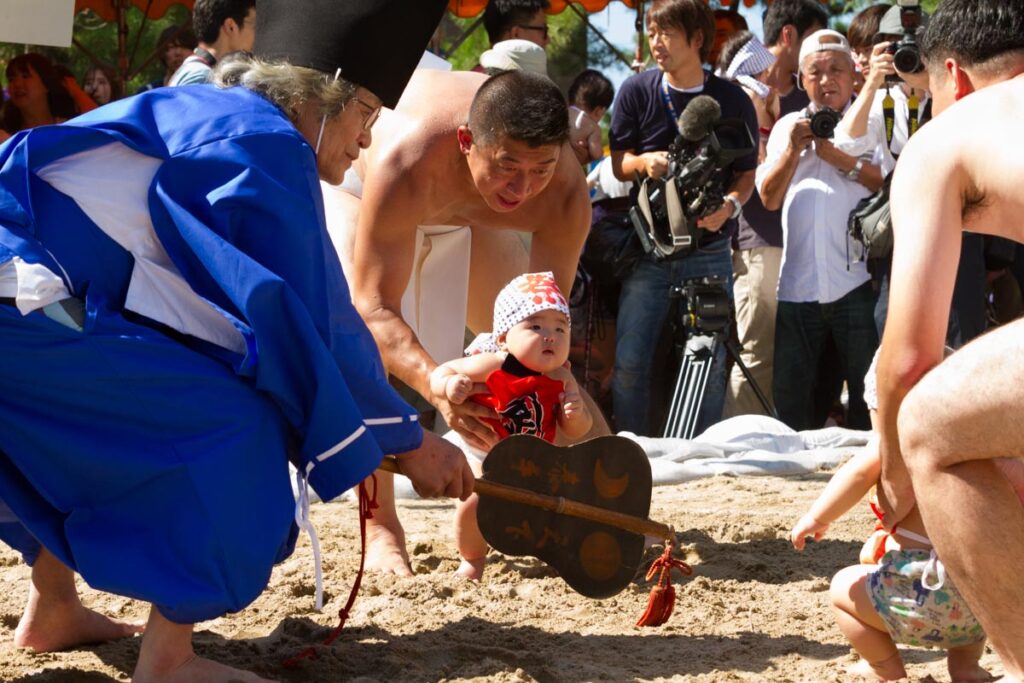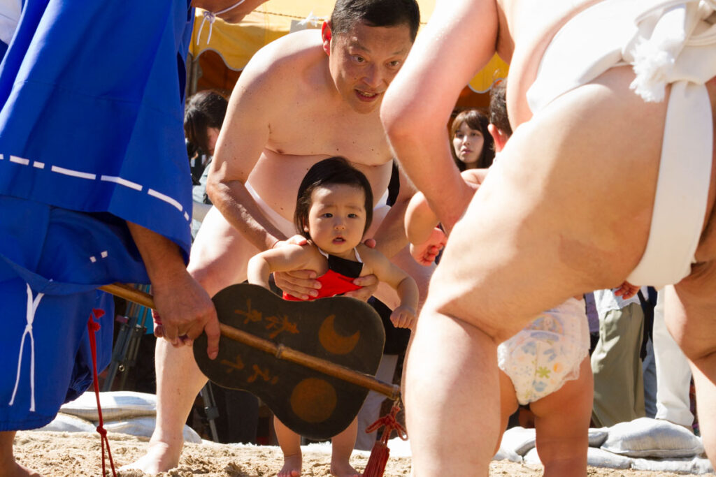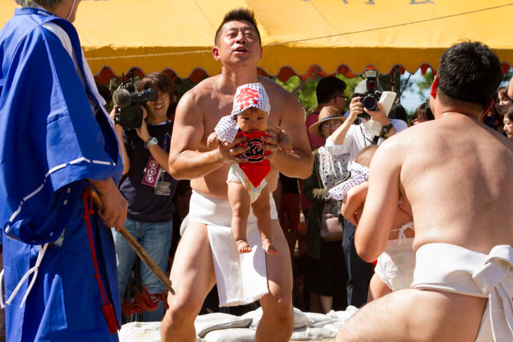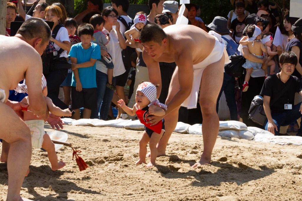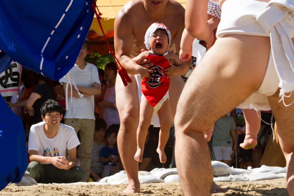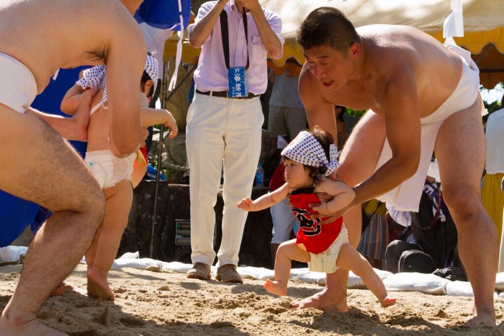 On the day of the festival, each infant is paired with a novice sumo wrestler, whose job is to raise the babies high into the air to induce crying. Put simply, whichever baby cries first is declared victorious. In the instance that both babies start crying simultaneously, the baby who cries the loudest and the longest is crowned the winner.