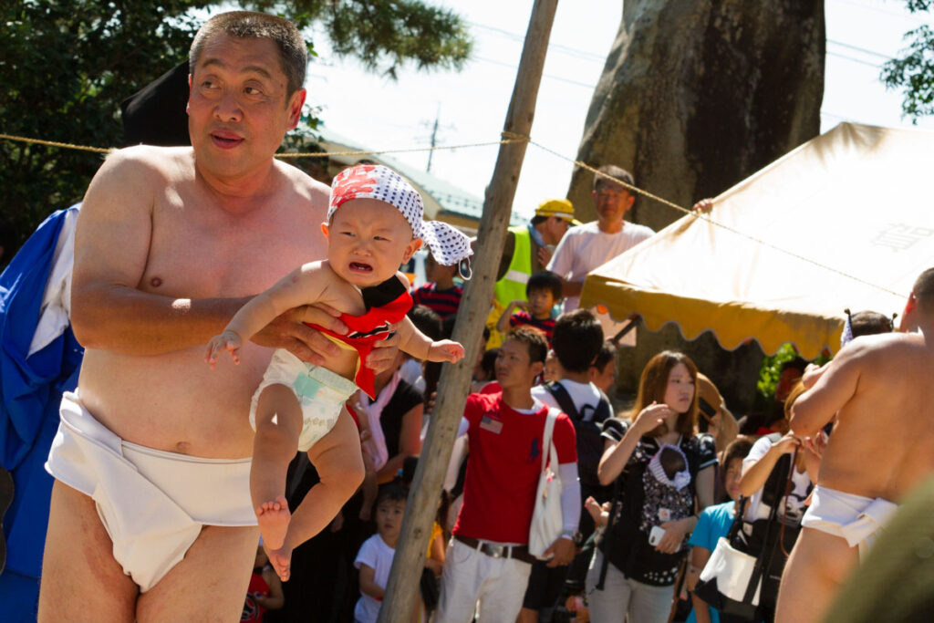 Remnants of sumo heritage persist at Karo Shrine in the form of local youth wrestling matches held during the Karo autumn festival and, more unusually, in the form of the Nakizumo (“Baby Crying Sumo”) festival held at Karo Shrine since 1989.
