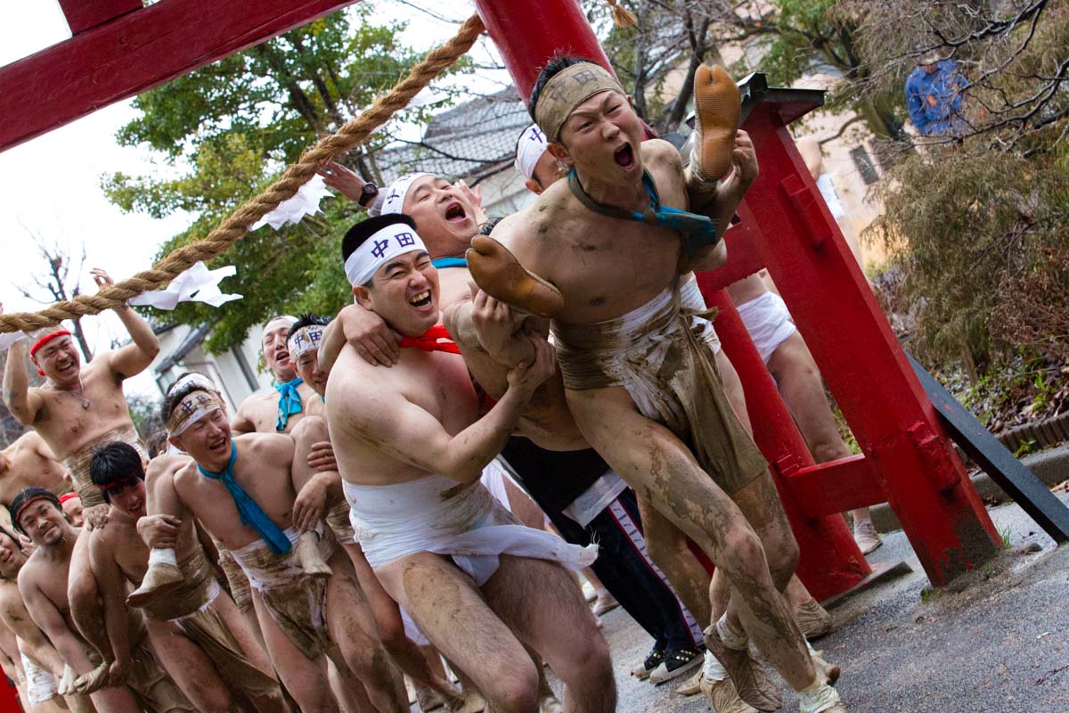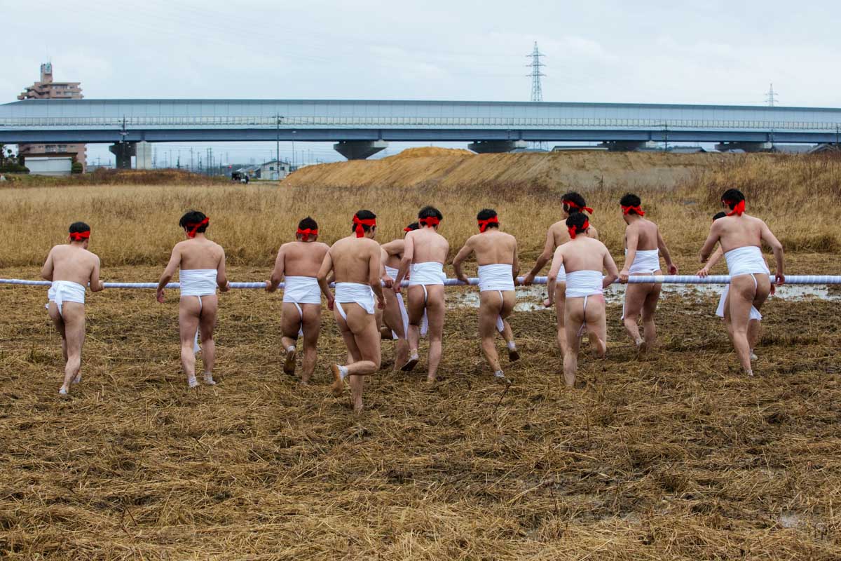 Every festival, whether large or small, well-known or obscure, has its own characteristics. One particularly noteworthy kind of festival is the hadaka matsuri, or “naked festival”, a type of Shinto event in which participants typically wear just a Japanese loincloth called a fundoshi. The hadaka matsuri is a purification ritual designed to drive away bad luck, evil spirits and calamities. Because nakedness is considered the purest form – the closest state a person can be to birth – it is necessary for a ritual purification ceremony.